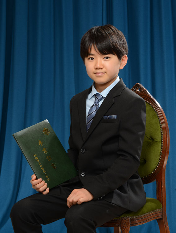 小学校入学のお子様は、6年間使う大切なランドセルと。卒業生の方は卒業証書など思い出の品とご一緒に。